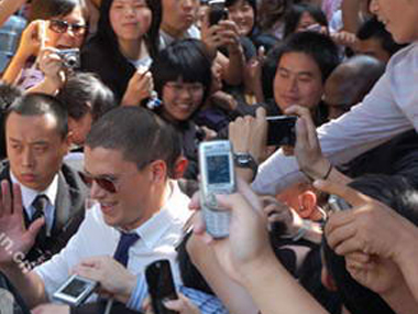 10月18日米勒現(xiàn)身上海南京路鬧市街頭為其代言的服裝品牌新店剪彩,數(shù)千粉絲圍觀,整條街被堵得水泄不通。擎天派出保安300余人,筑造了幾層安保體系,讓粉絲既能近距離接觸米勒,又確保巨星米勒的安全……