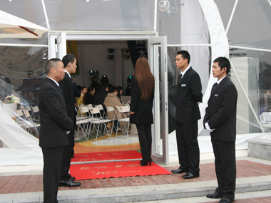 盡管當(dāng)天溫度低至8度,但我們隊員穿著襯衫、西服從9點開始一直堅守崗位至19點多,沒有半句怨言,在此次活動中我們隊員表現(xiàn)出了良好的專業(yè)素養(yǎng),活動結(jié)束后客戶給我們發(fā)來了短信——“今天是你們的功勞,非常感謝!”